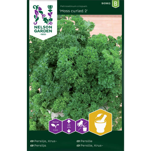 Välkänd och populär kryddväxt till matlagning och dekoration. Skörda blad vid behov och långt in på hösten. Plantan övervintrar, åtminstone i södra delen av landet. Ger då tidig skörd år 2, innan den går i blom. Går bra att frysa. Trivs i näringsrik och väldränerad jord. Vattna vid torka.